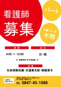風邪症状や発熱のある方へ 2024年12月14日 最終更新日時 : 2025年9月6日 kitamura-clinic 受診される際は、必ず事前にお電話の上、 マスクを着用しての受診に、ご協力お願い致します。 原則、車での受診になります。車での待機をお願いしております。 0847-45-1088ご予約・お問い合わせはこちら